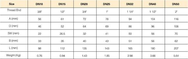 | Умовний прохід, мм | 10, 15, 20, 25, 32, 40, 50 |
